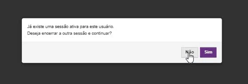 Passo 1: Opção para Manter a Sessão Original Caso deseje que o acesso antigo continue funcionando, clique no botão Não. O login na nova aba não será realizado e a sessão original permanecerá ativa sem interrupções.