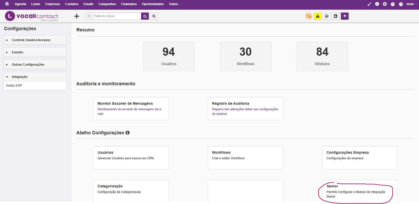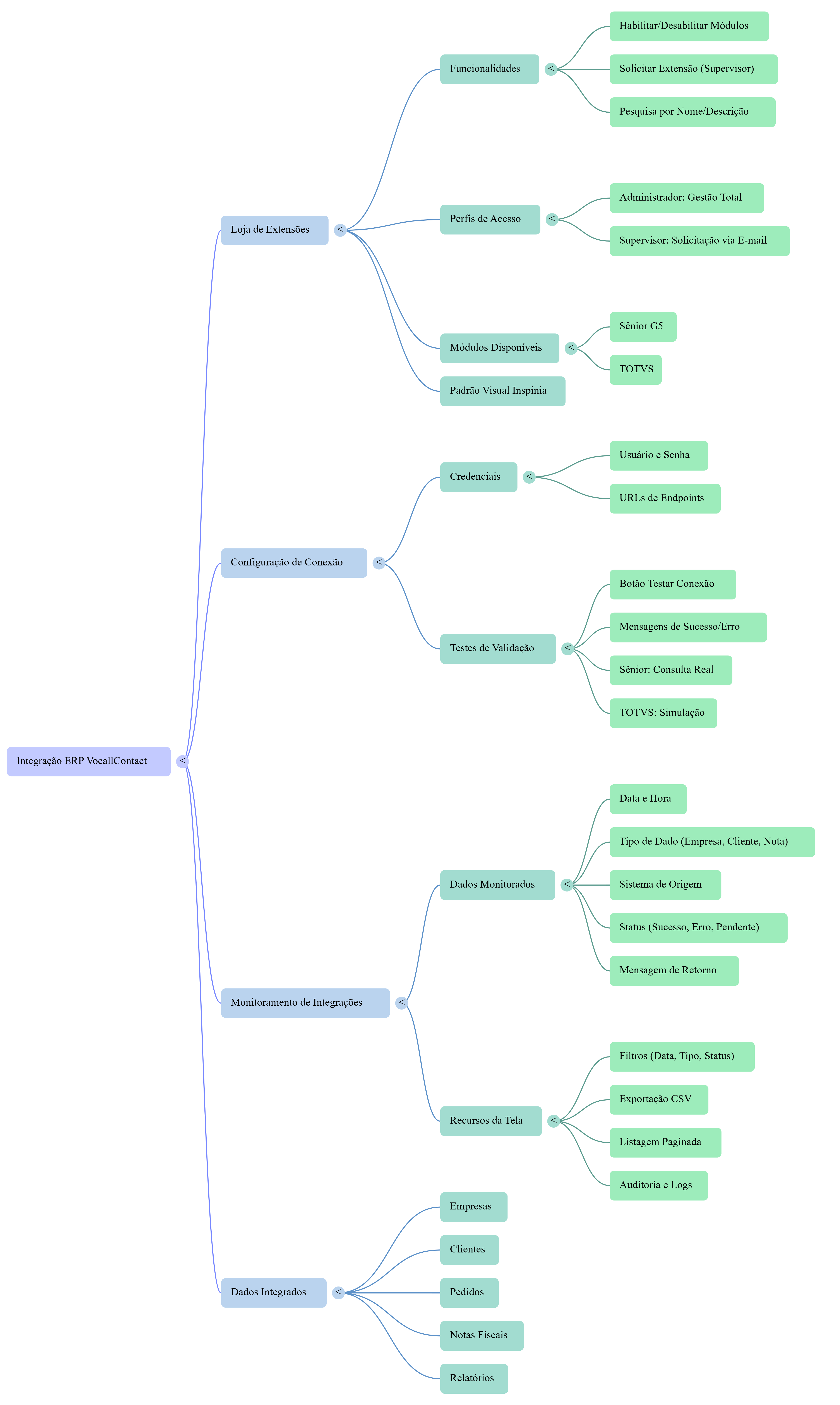 Este guia orienta supervisores e administradores sobre a nova central de integrações e monitoramento de dados. O objetivo é centralizar a gestão de módulos externos e garantir a integridade do fluxo de informações críticas, como pedidos e notas fiscais, entre o VocallContact e sistemas de gestão (ERP).